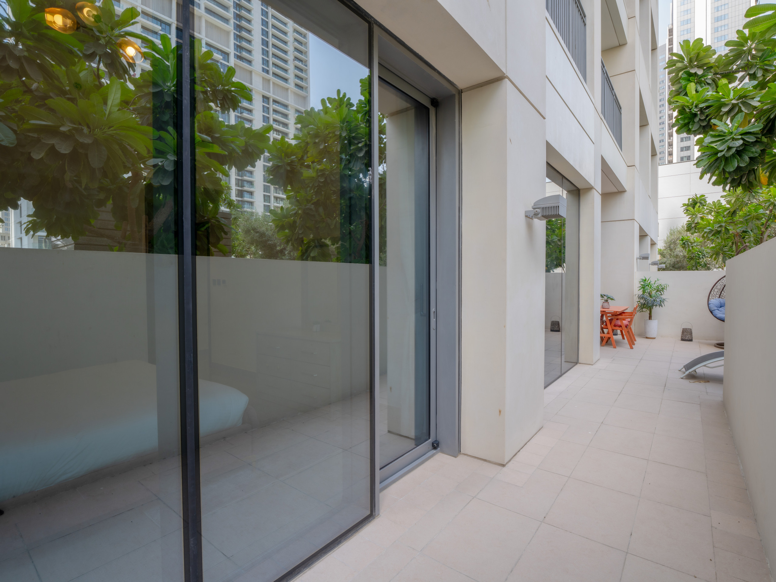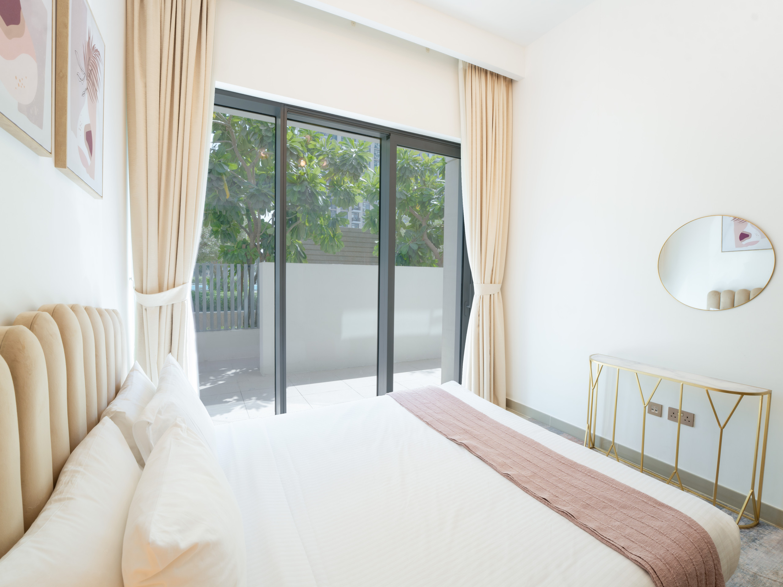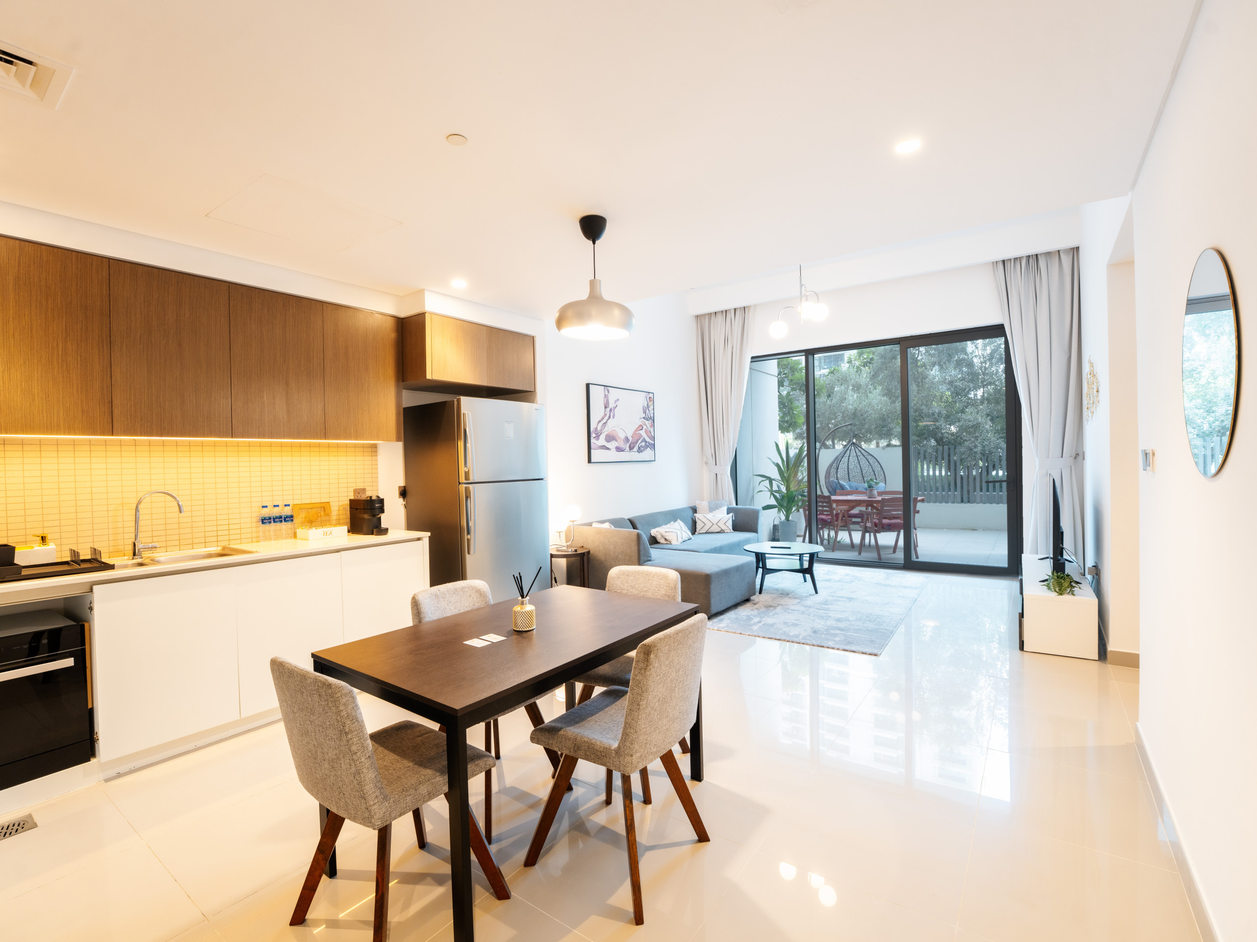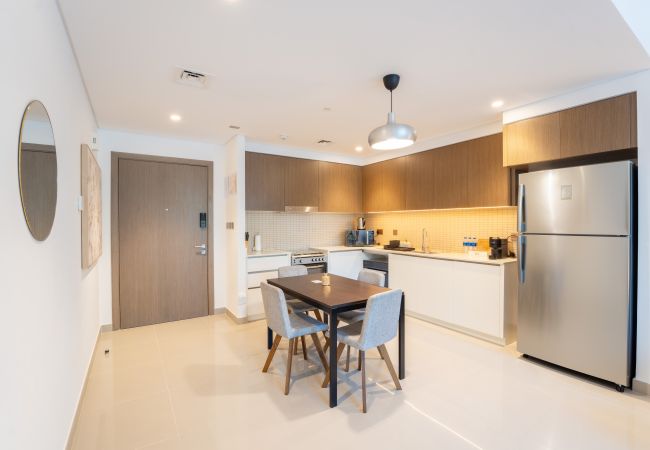 Immerse into classical stay experience filled with comfort and prestige. The property is designed to provide exceptional comfort. The private terrace with Garden were our guests can enjoy outdoor space for their friends and family , with stylish outdoor furniture. relaxing sitting area that can be converted to a sofa bed. one bedroom has king bed and the second bedroom King bed, each bedroom has a private bathroom with bathtub and the other with standup shower. Fully equipped kitchen with dining, cooking ware and essentials. Smart TV with high speed WIFI. The property is ideal for a big family of 4 or a group of friends to experience Dubai creek Harbor vibes